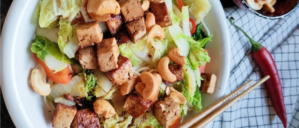 We eten graag noedels doordeweeks. Dit heerlijke en makkelijke roerbak gerecht staat in 30 minuten tijd op tafel. Deze noedels met Chinese kool en tofu zitten boordevol groenten overgoten met een heerlijk wok sausje.