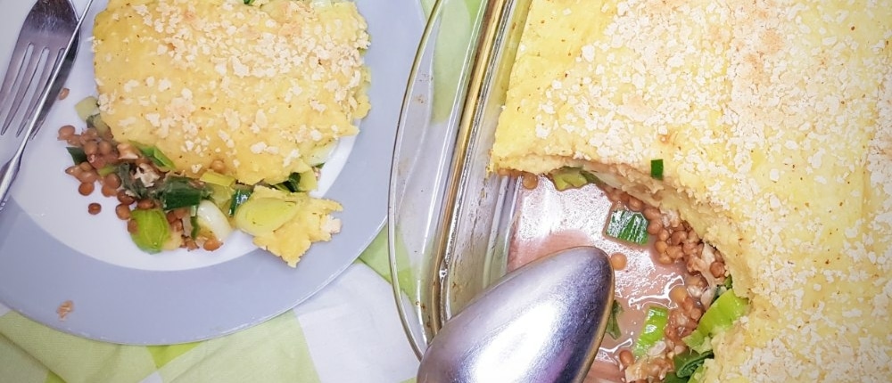 Preischotel is een gerecht dat ik me herinner uit mijn jeugd. Zo’n hete ovenschotel met heerlijke romige puree en de zachte smaak van prei. Deze preischotel met linzen en walnoten komt heel dicht bij de schotel die mijn moeder maakte. Maar deze schotel is helemaal plantaardig.