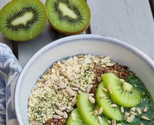 Smoothiebowl is een dikkere versie van een drinkbare smoothie. Het is vaak gevuld met groenten en fruit. En als toppings worden fruit, noten, granen en zaden gebruikt. Een smoothiebowl is een heerlijk ontbijt om de dag gezond mee te beginnen.