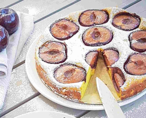 Ik hou van desserts. Zeker als ze makkelijk te maken zijn, zoals deze vegan clafoutis met pruimen. Deze hemelse Franse taart maak je in een handomdraai.