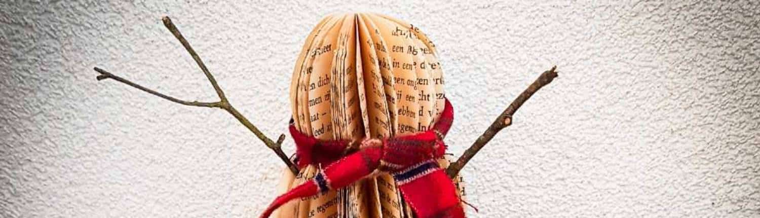 Van een oud boek kun je een heleboel dingen maken, zo vonden we bij DuurzameKeuzes uit. Zo maake Hometalk een papieren sneeuwman. Mascha maakte haar eigen versie van deze sneeuwman van een oud en versleten boek van de kringloop. Een leuk project wat vlot klaar was. Deze sneeuwman is vast een upcycle project wat vaak terug gaat komen bij onze kerstdecoratie.